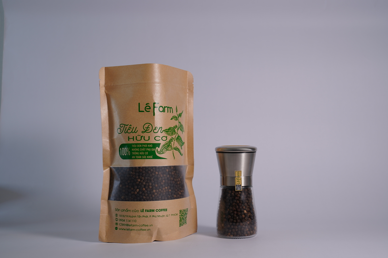 Với mong muốn mang đến những hạt tiêu chất lượng, tốt và an toàn cho sức khỏe của người tiêu dùng, Lê Farm cho ra mắt bộ sản phẩm tiêu đen hữu cơ, kèm cối xay tiêu cao cấp. Thành phần hoàn toàn từ hạt tiêu đen hữu cơ giá trị cao - tạo nên gia vị tuyệt vời trong các bữa ăn của gia đình Việt.